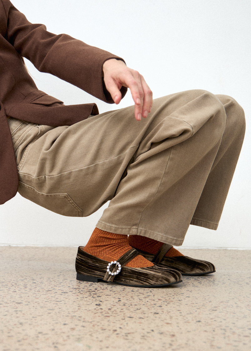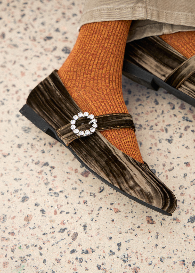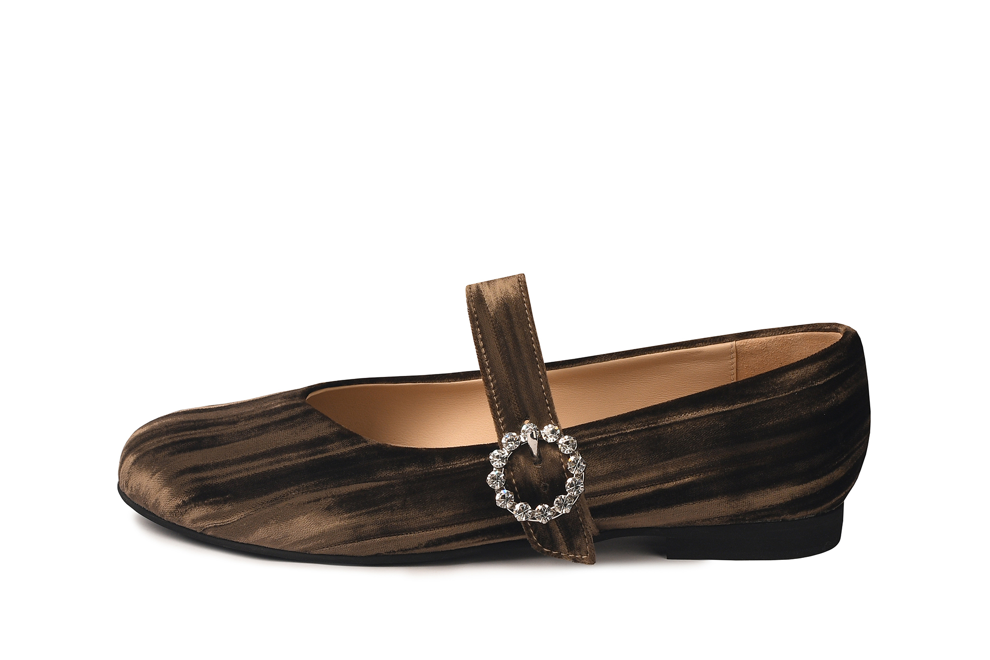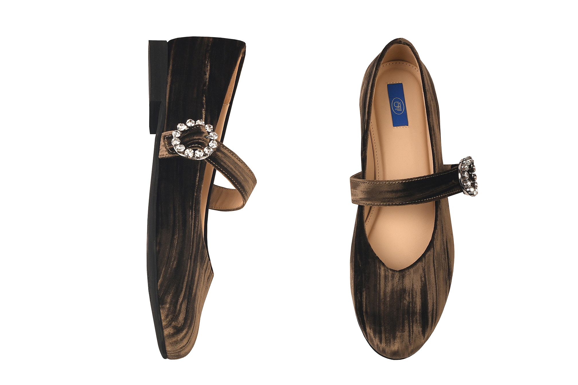 Балетки "Мэри Джейн" из благородного итальянского бархата с пряжкой, украшенной камнями.