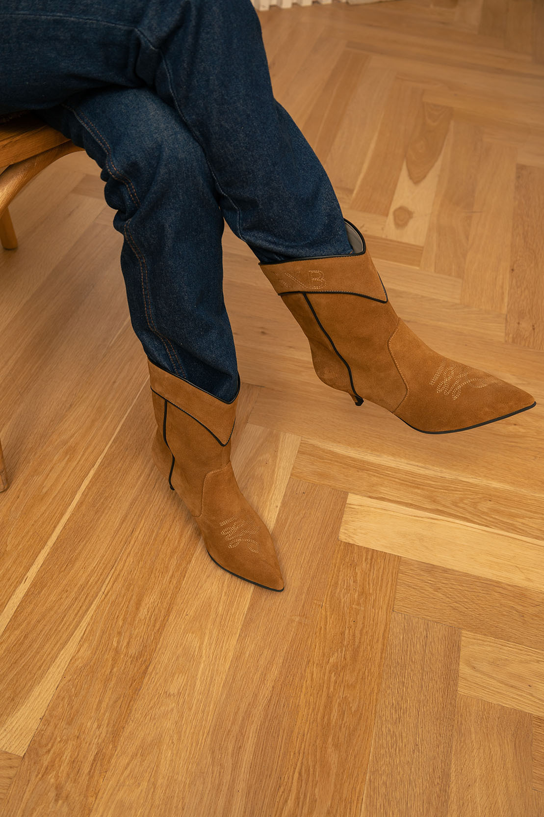 Мода 60-х годов и стиль "Бохо". Натуральные материалы: замша и кожа, природные цвета, удобные низкие каблуки на сапогах с вышивкой.