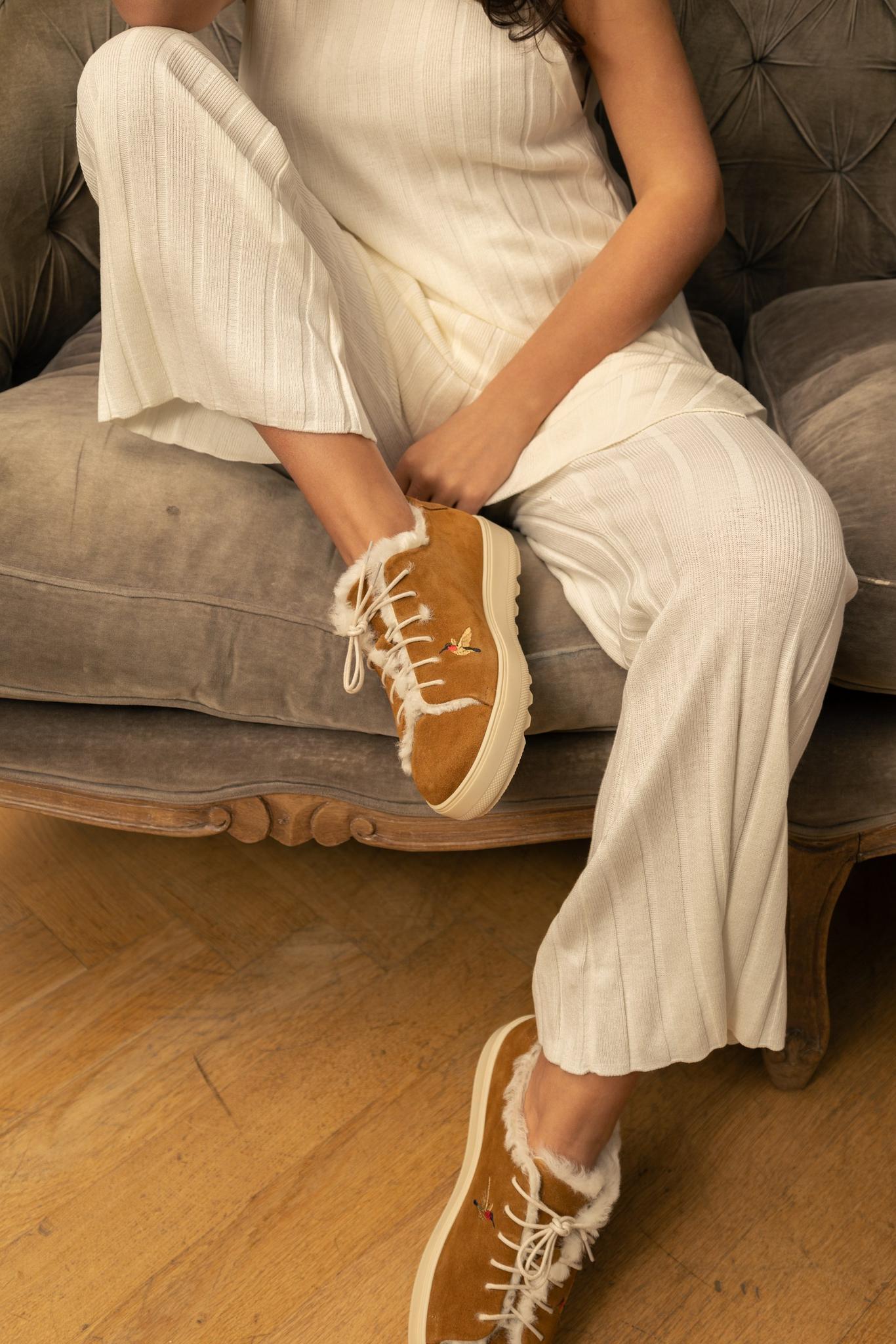 Мода 60-х годов и стиль "Бохо". Натуральные материалы: замша, кожа, натуральная овчина, 100% шерсть и природные цвета. Аромат кожи и природного синтетического каучука на подошве, подчеркивают аутентичность.