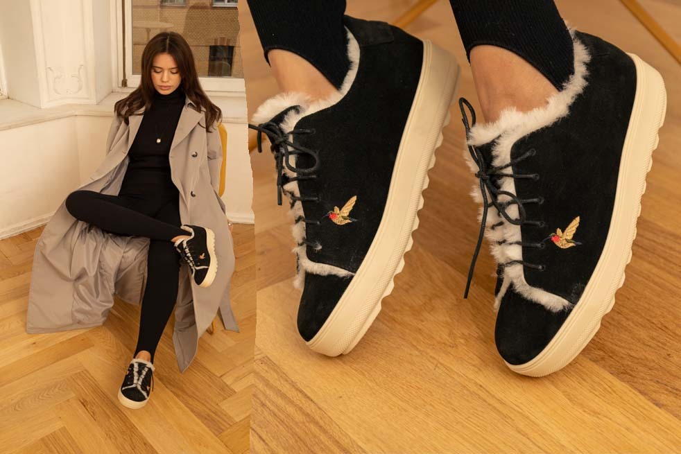 Мода 60-х годов и стиль "Бохо". Натуральные материалы: замша, кожа, натуральная овчина, 100% шерсть и природные цвета. Аромат кожи и природного синтетического каучука на подошве, подчеркивают аутентичность.