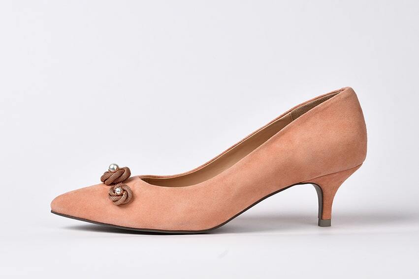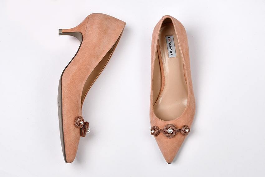 Итальянские замшевые туфли на каблуке 5 см с декором в виде броши розового золота с жемчужиной. Идеальная посадка и невесомость.