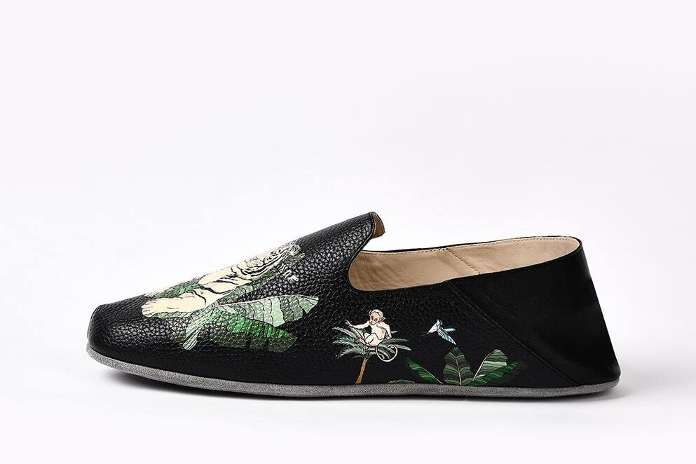 Эти невероятно красивые и мягкие кожаные домашние тапочки — воплощение утончённой элегантности и настоящего ремесленного мастерства. Каждая пара изготовлена вручную из натуральной кожи, что гарантирует долговечность и уникальность каждого изделия. Принт с изображением величественного бенгальского тигра и зелёных джунглей словно переносит вас в атмосферу дикой природы, создавая ощущение тепла и уюта в вашем доме.