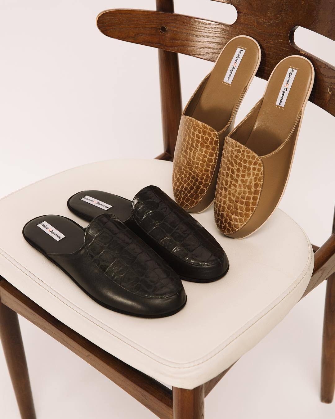 Домашние тапочки из натуральной кожи под крокодил.
