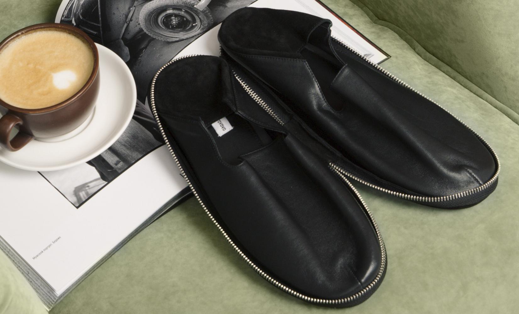 Домашние тапочки путешественника — пара идет в комплекте с кожаным чехлом на молнии и отлично подходит для неуловимого мужчины! Удобные задники, натуральные материалы и возможность вышить инициалы будущего владельца— кого-то ждет отличный подарок!