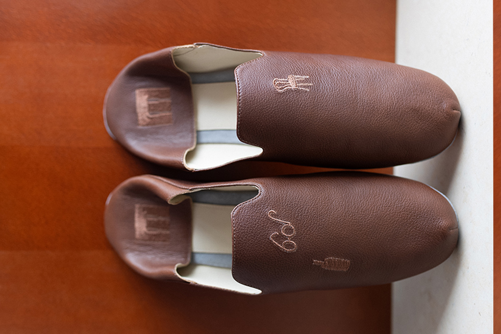 Возможно вышить инициалы владельца на чехле и тапочках также за дополнительную плату.