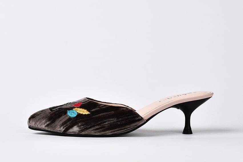 Мюли на каблучке для дома и улицы из благородного итальянского бархата с вышивкой. Это коллаборация с театральным художником Сергеем Кретенчуком, который отправляет нас в мир любимых с детства мультфильмов с философскими сюжетами. Подходят как для дома, офиса так и для уличных прогулок.