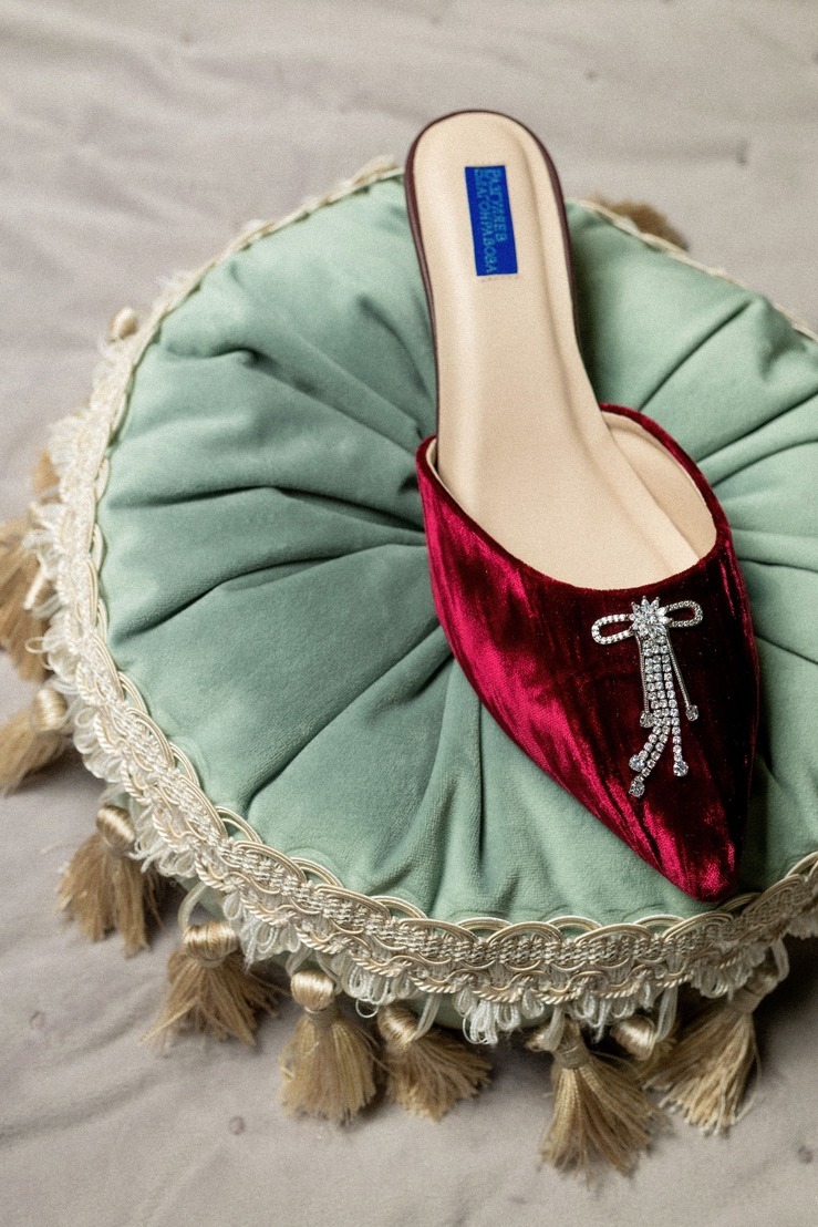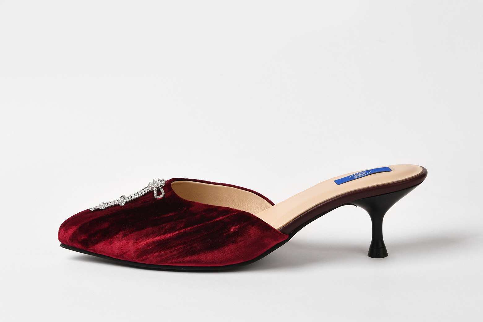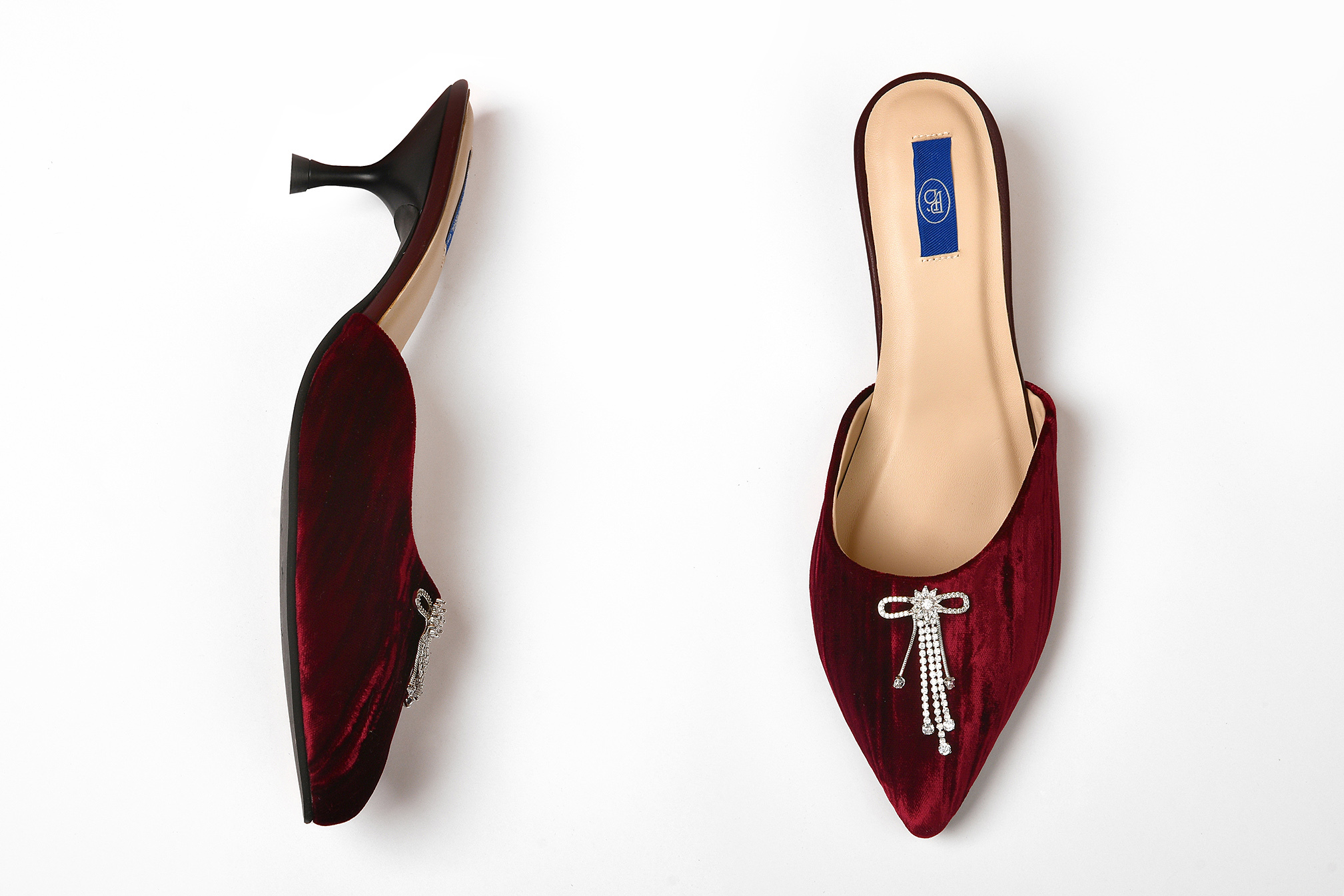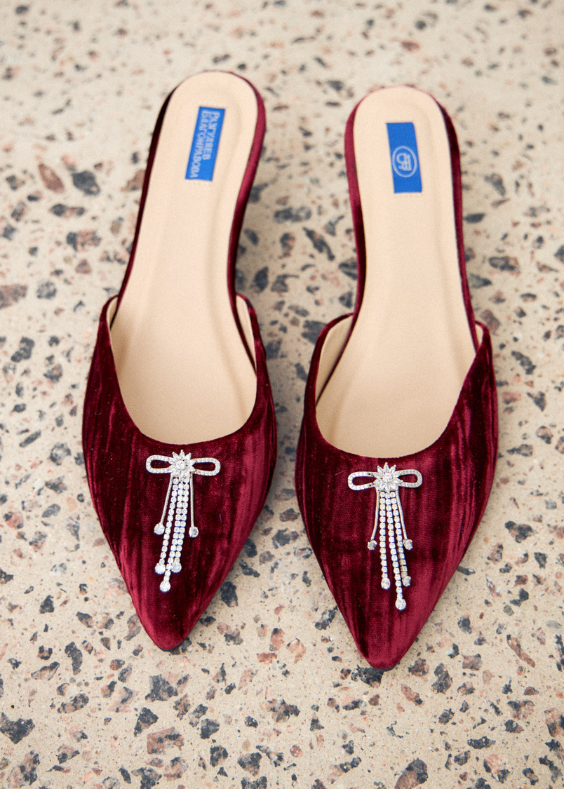 Почувствуйте эстетику современной классики с мюлями от «Разгуляев-Благонравова». Модель выполнена из премиального шелкового бархата в глубоком бордовом оттенке. Главный акцент — изящная ювелирная брошь, инкрустированная сияющими кристаллами, которая придает паре торжественный вид.