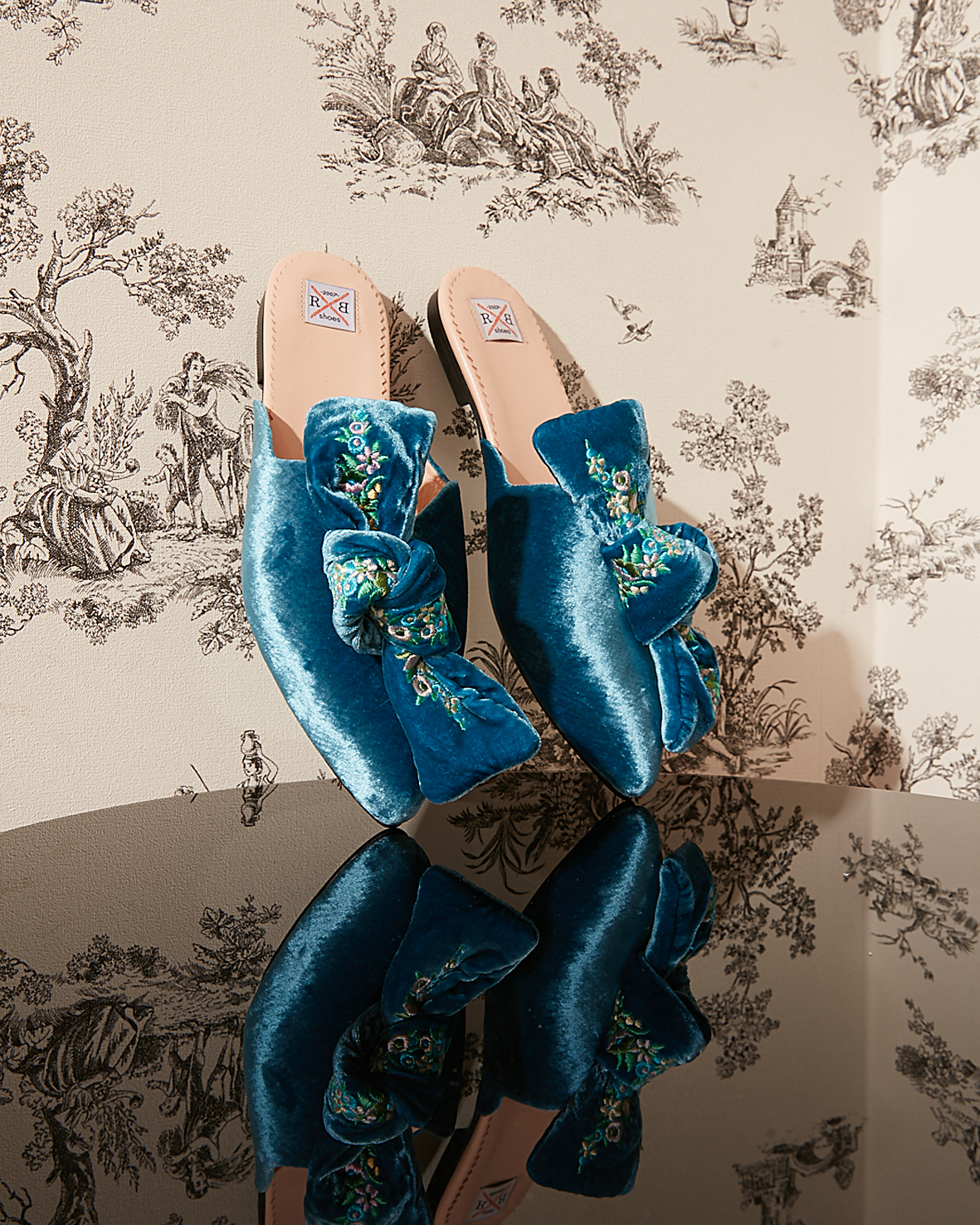 Нежные мюли из шелкового бархата с бантом и цветочной вышивкой — станут лучшим завершением любого образа. Будь то джинсы и футболка, укороченные брюки и блузка, милое нежно платье. Носите как дома так и на улице и привлекайте внимание окружающих. Днем вам будет комфортно и удобно в мюлях, а вечером можете смело переобуваться в каблуки.
