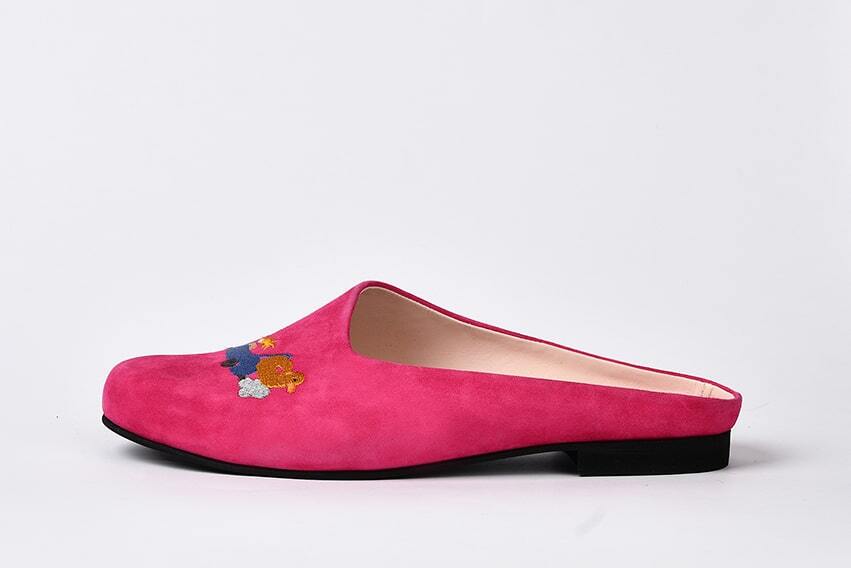 Мюли замшевые для дома и улицы с вышивкой- коллаборация с театральным художником Сергеем Кретенчуком, который отправляет нас в мир любимых с детства мультфильмов с философскими сюжетами.