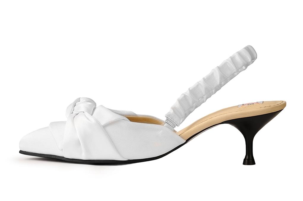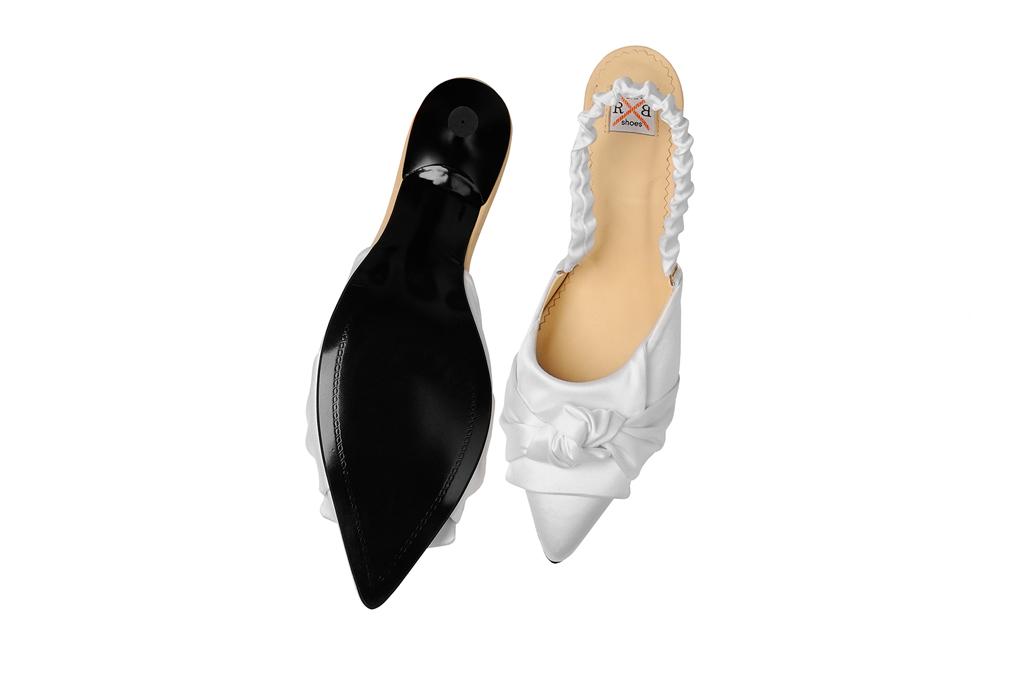 Элегантные мюли из жемчужного шелка, декорированы узлом. Очень удобная форма и небольшой каблучок 5 см идеально подойдут для той самой важной секунды, мгновения в вашей жизни. На пятке съемная резинка, чтобы вы сами выбрали как удобнее.