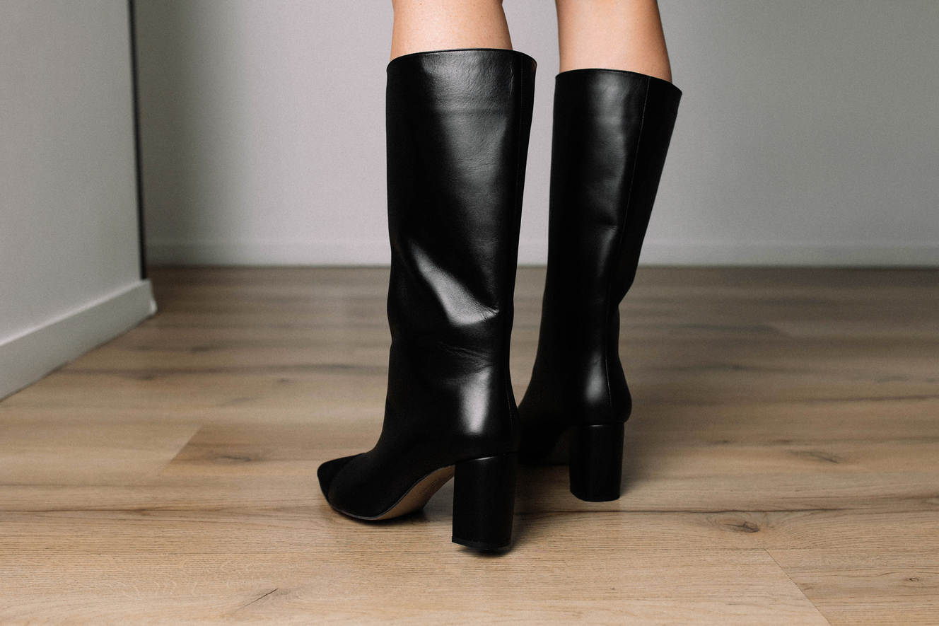 Сапоги из натуральной кожи на каблуке-столбике 7.5 см — Ручная работа.