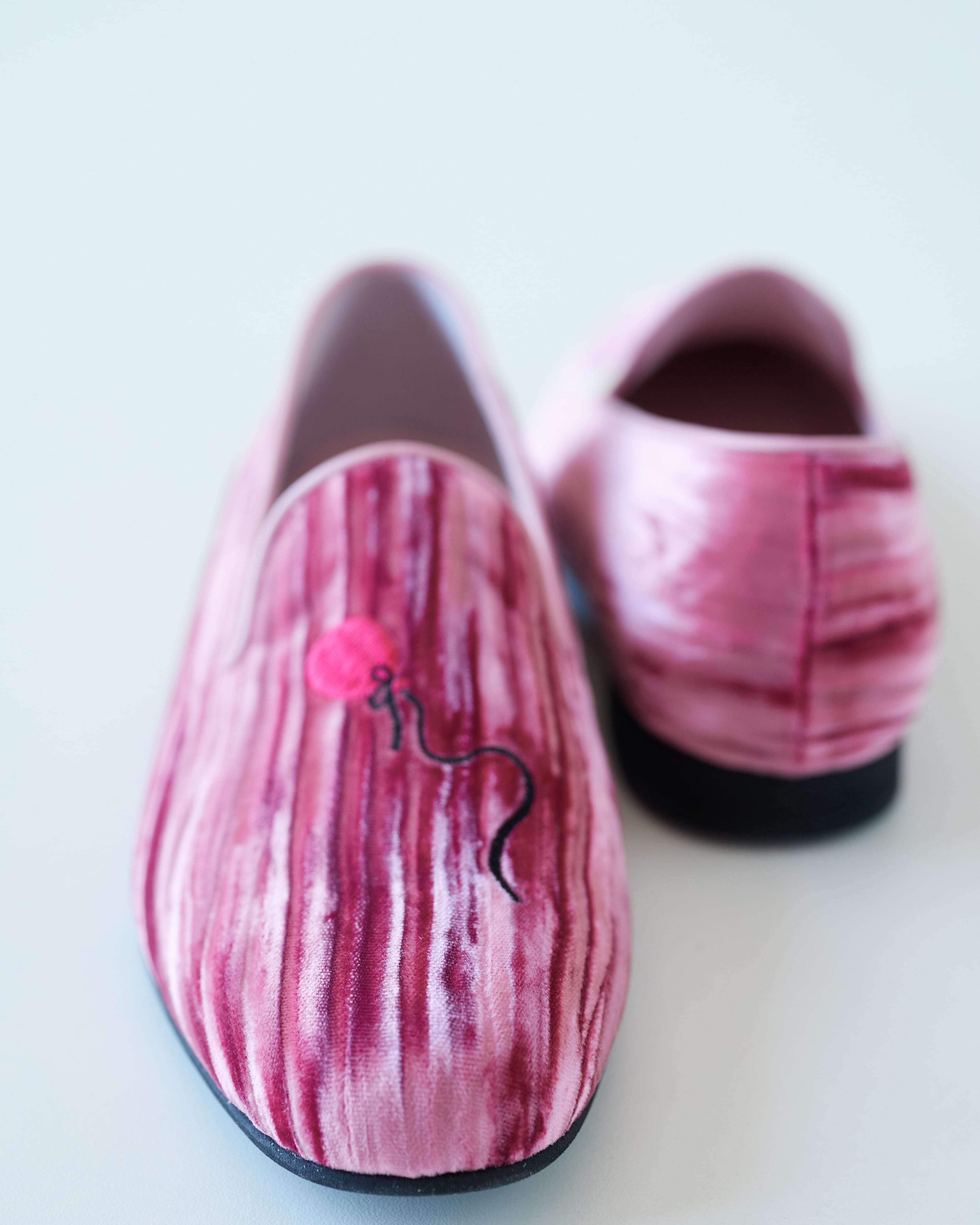 Роскошные слиперы для дома и улицы из благородного французского бархата украшены художественной вышивкой в рамках коллаборации с театральным художником Сергеем Кретенчуком. Каждая пара погружает в философский мир любимых с детства мультфильмов, сочетая искусство с повседневным комфортом. Удобная колодка и мягкая подошва делают эти слиперы идеальными для любого времени дня.