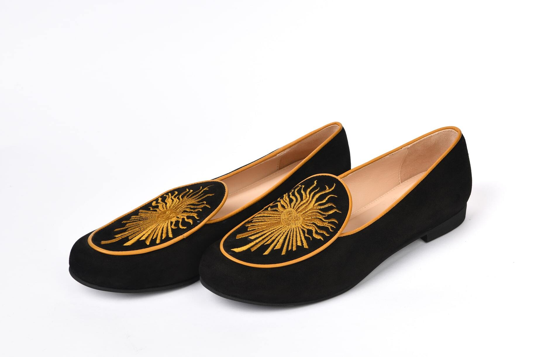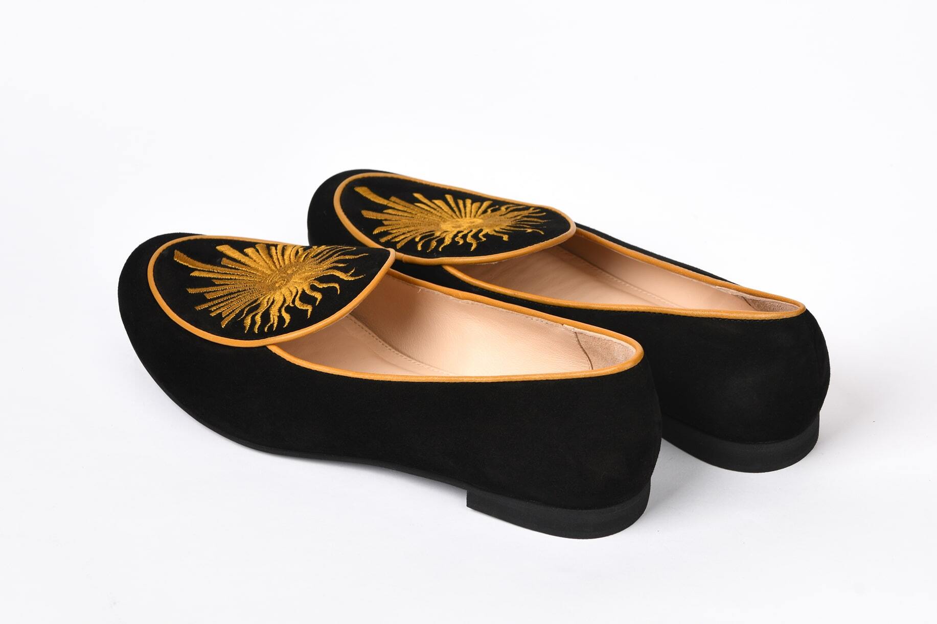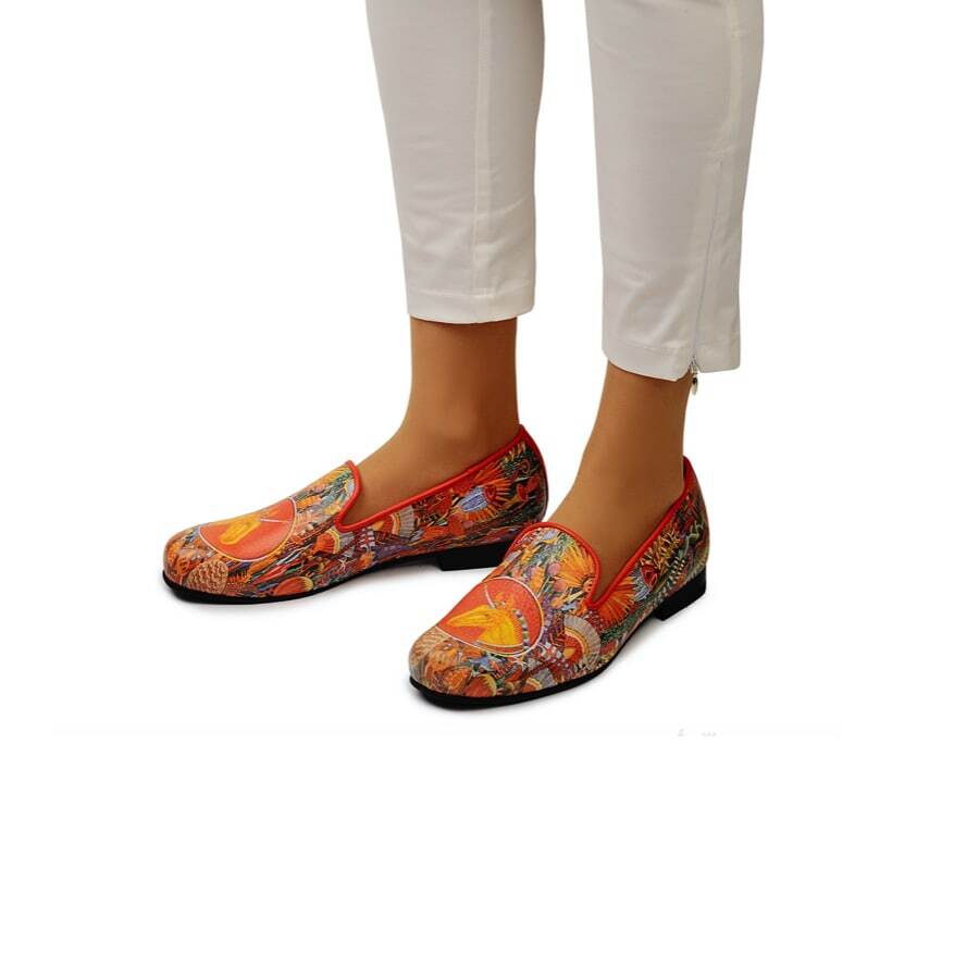 Слиперы для дома и улицы "Единорог счастья" созданы по мотивам картины К. Овчинникова. Уникальный принт нанесен на мягчайшую итальянскую кожу, создавая яркий, но универсальный образ.