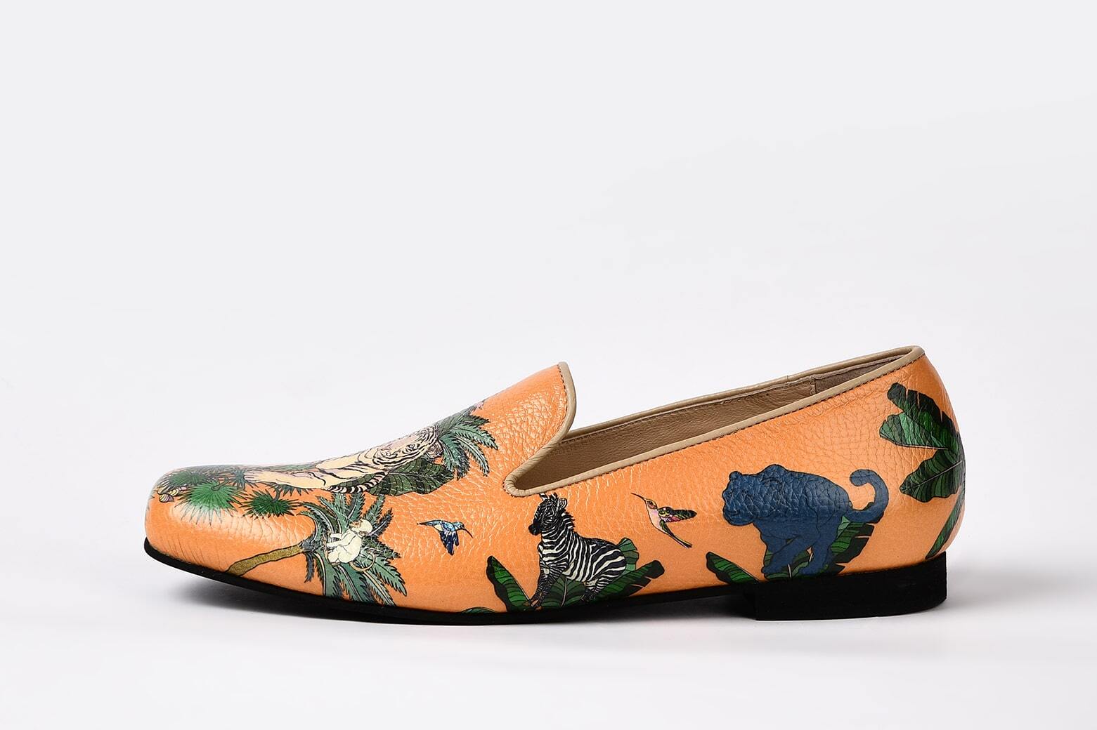 Слиперы для тех, кто знает цену стилю — и комфорту. Эта пара говорит за вас. Натуральная кожа с ярким авторским принтом Кати Белявской: дикие джунгли, грациозный тигр — образ, полный силы, свободы и характера. Закрытый носик и устойчивый каблук высотой всего 1,5 см — идеальный баланс между элегантностью и заботой о ногах. Кожаная стелька, мягкая посадка и правильная форма — всё, чтобы идти по жизни уверенно и легко.