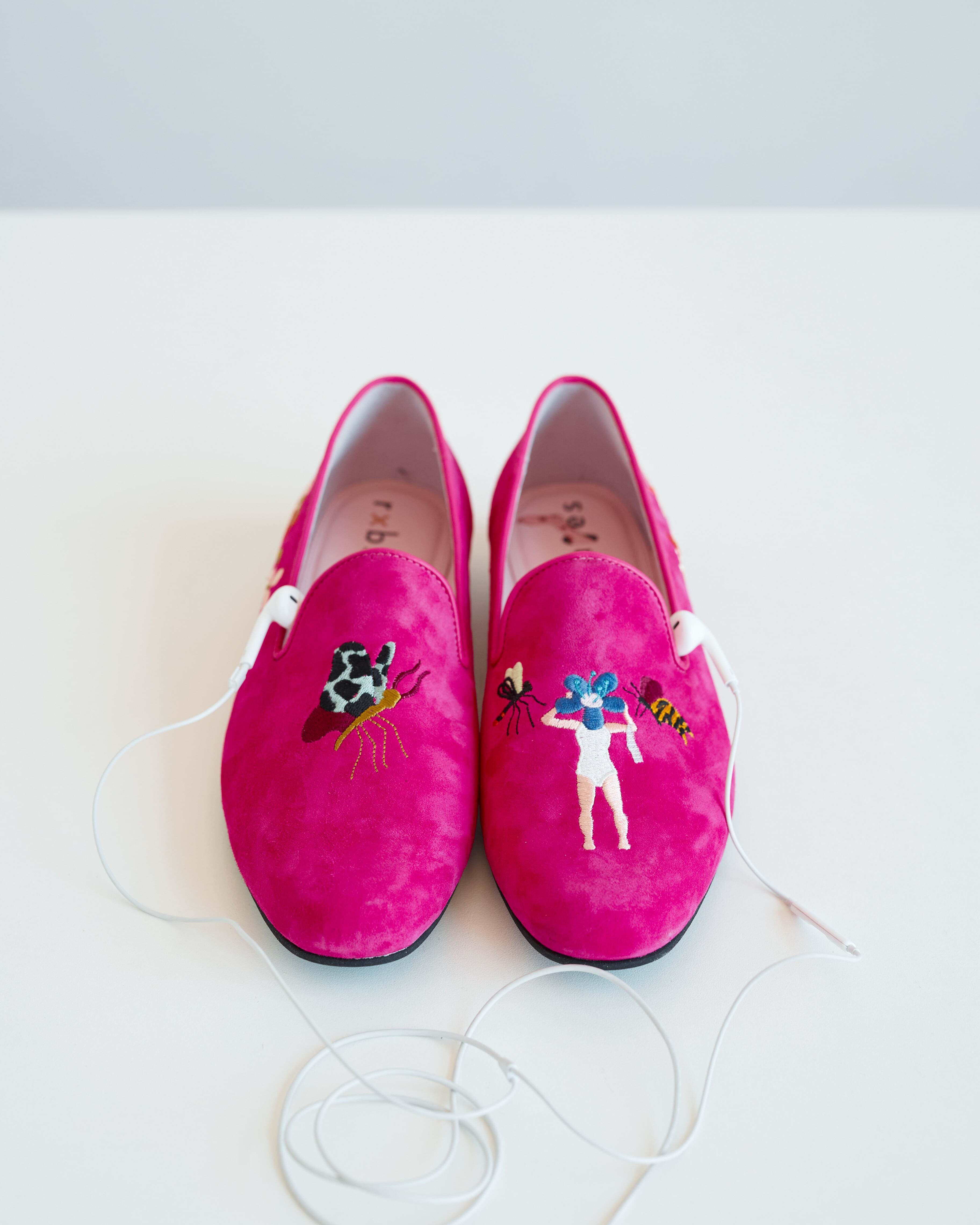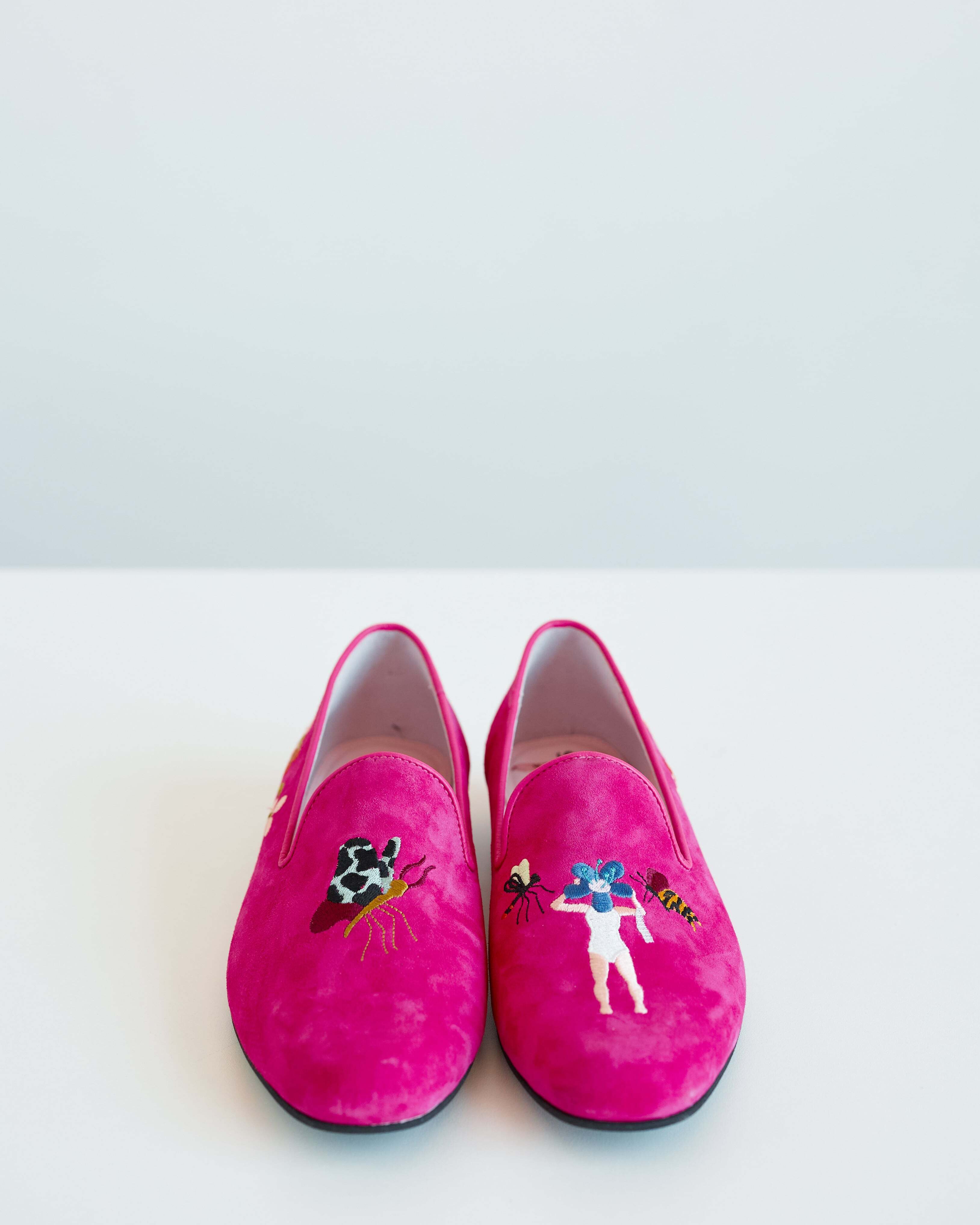 Роскошные слиперы для дома и улицы из натуральной замши украшены художественной вышивкой в рамках коллаборации с театральным художником Сергеем Кретенчуком. Каждая пара погружает в философский мир любимых с детства мультфильмов, сочетая искусство с повседневным комфортом. Удобная колодка и мягкая подошва делают эти слиперы идеальными для любого времени дня.
