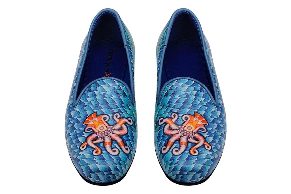 Слиперы из натуральной кожи с печатью подойдут как для улицы, так и для дома. В дизайне использованы мотивы творчества Петербургского художника Кирилла Овчинникова.