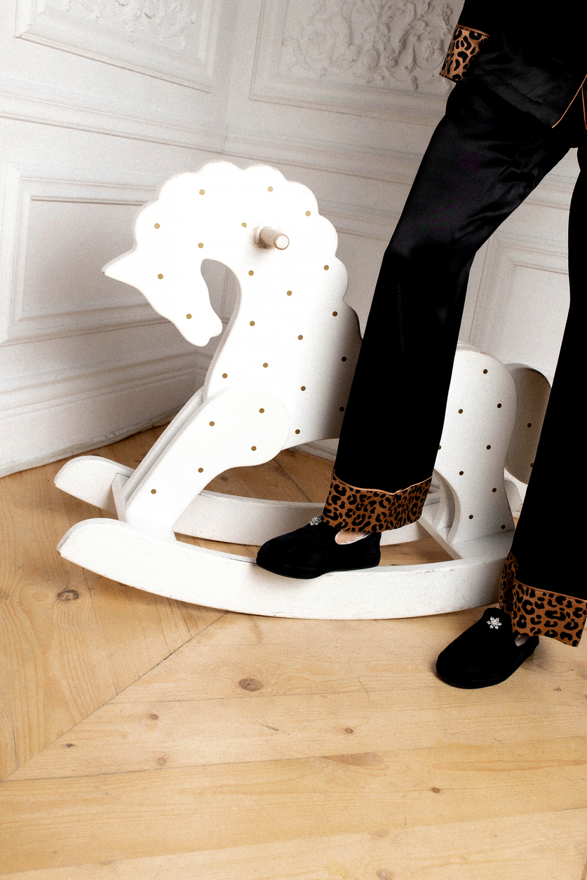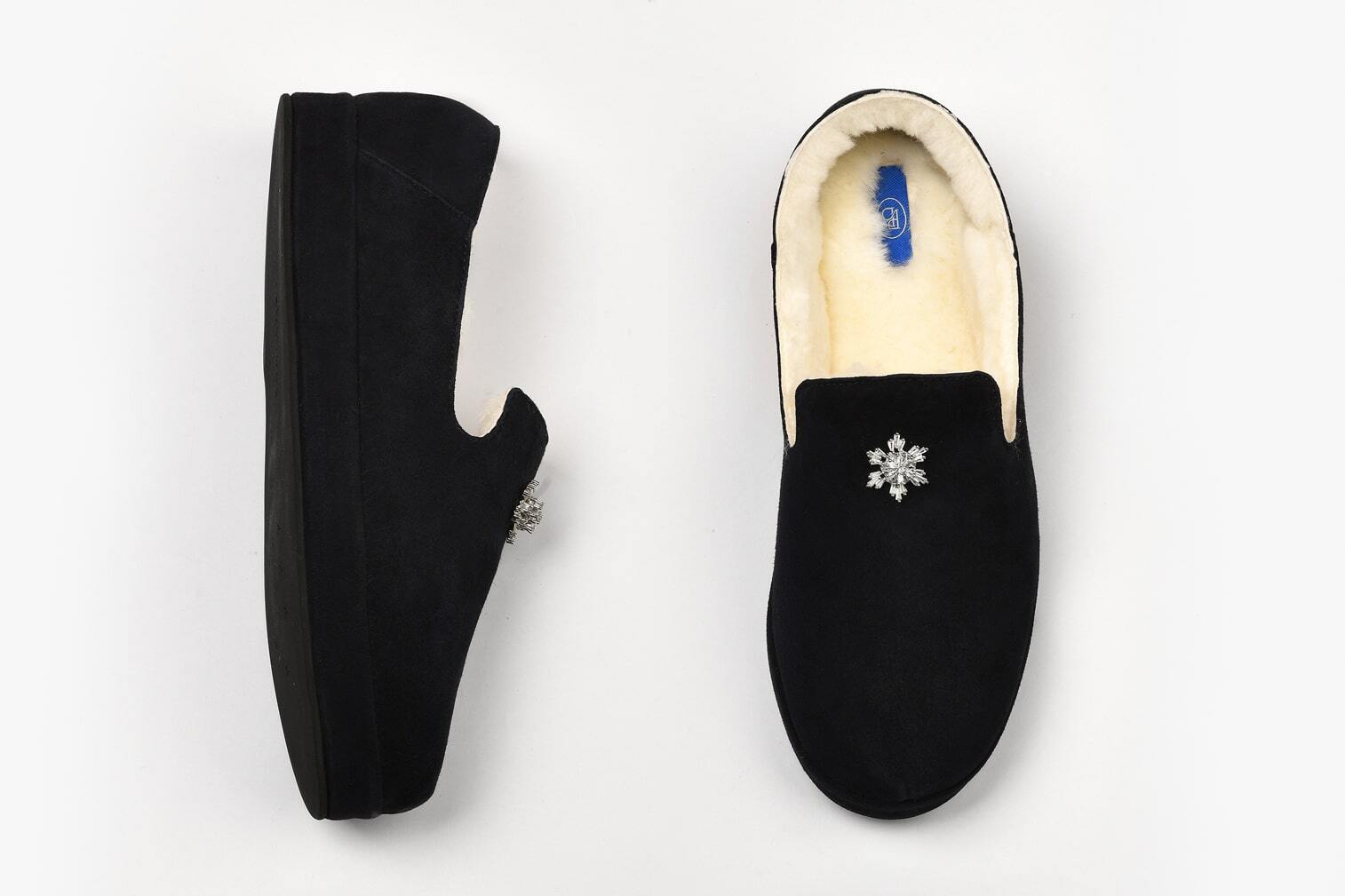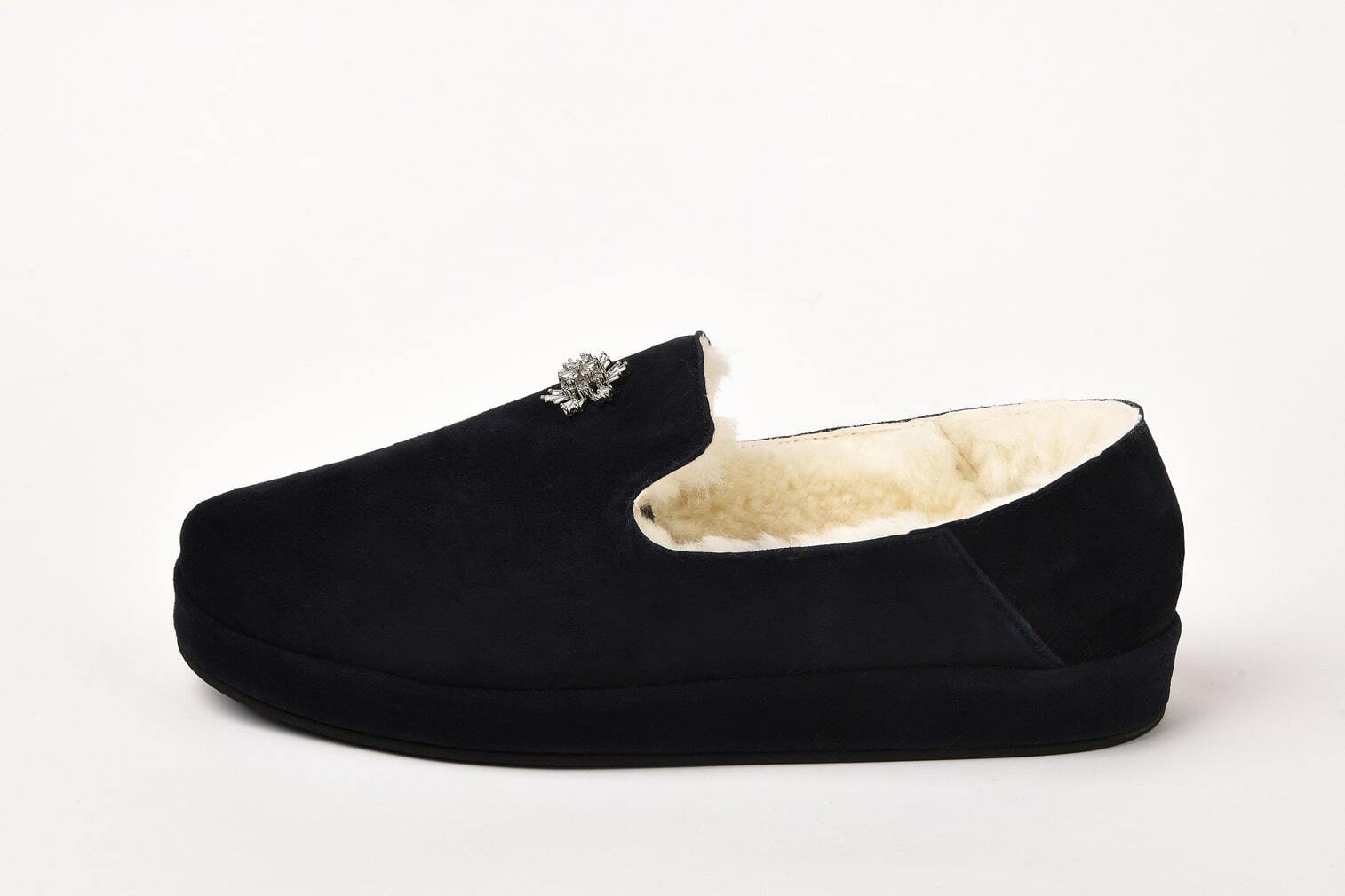 Праздничные уличные слипоны из тончайшей итальянской замши высшего качества. Модель украшена изысканной металлической брошью с огранённым стеклом, которая переливается при каждом движении, придавая образу особый шарм, элегантность и нотку торжественности.
