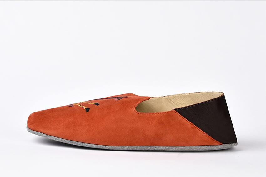 Домашние кожаные тапочки c вышивкой из коллаборации с театральным художником Сергеем Кретенчуком - это путешествие в мир любимых с детства мультфильмов с философскими сюжетами.