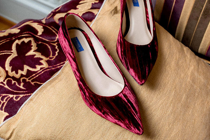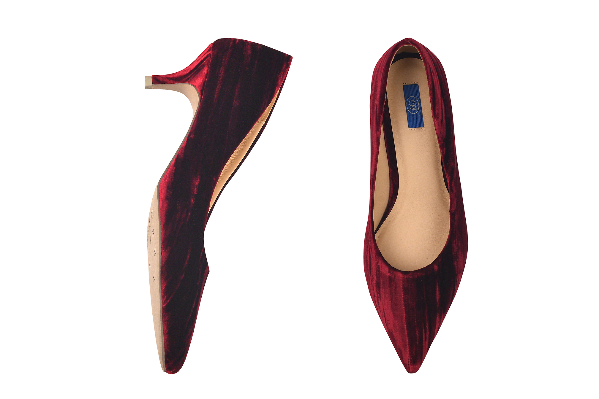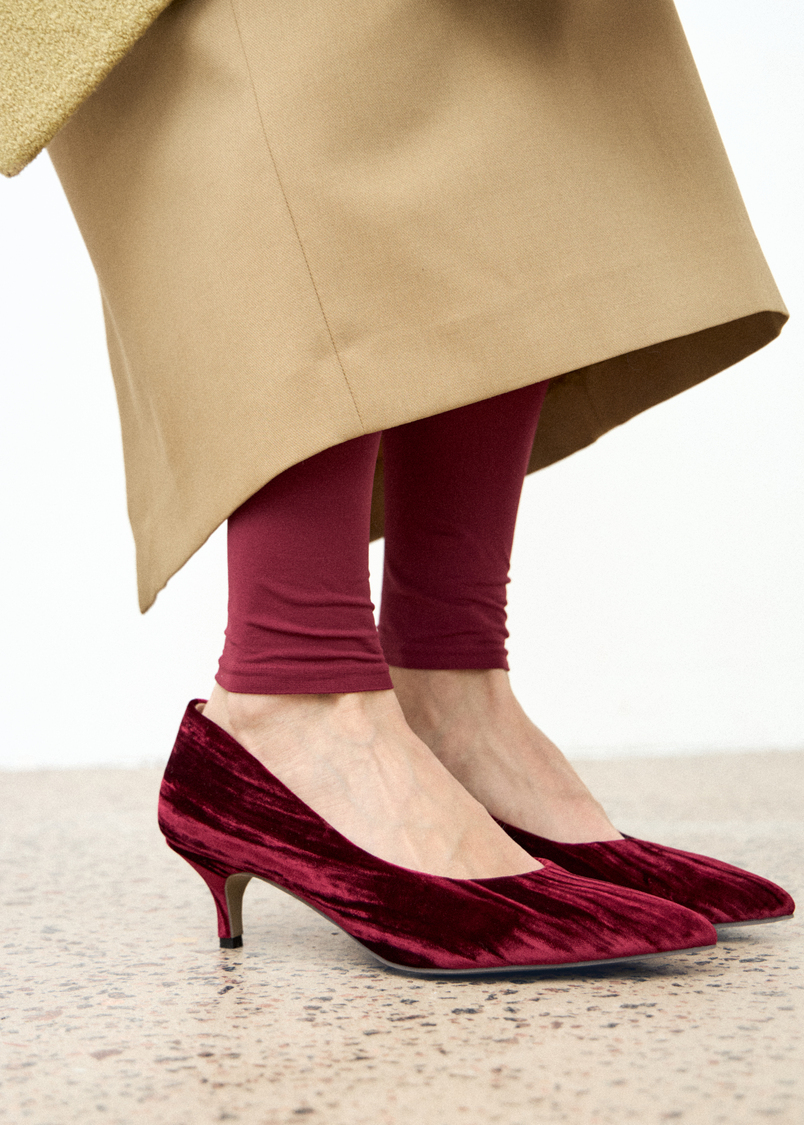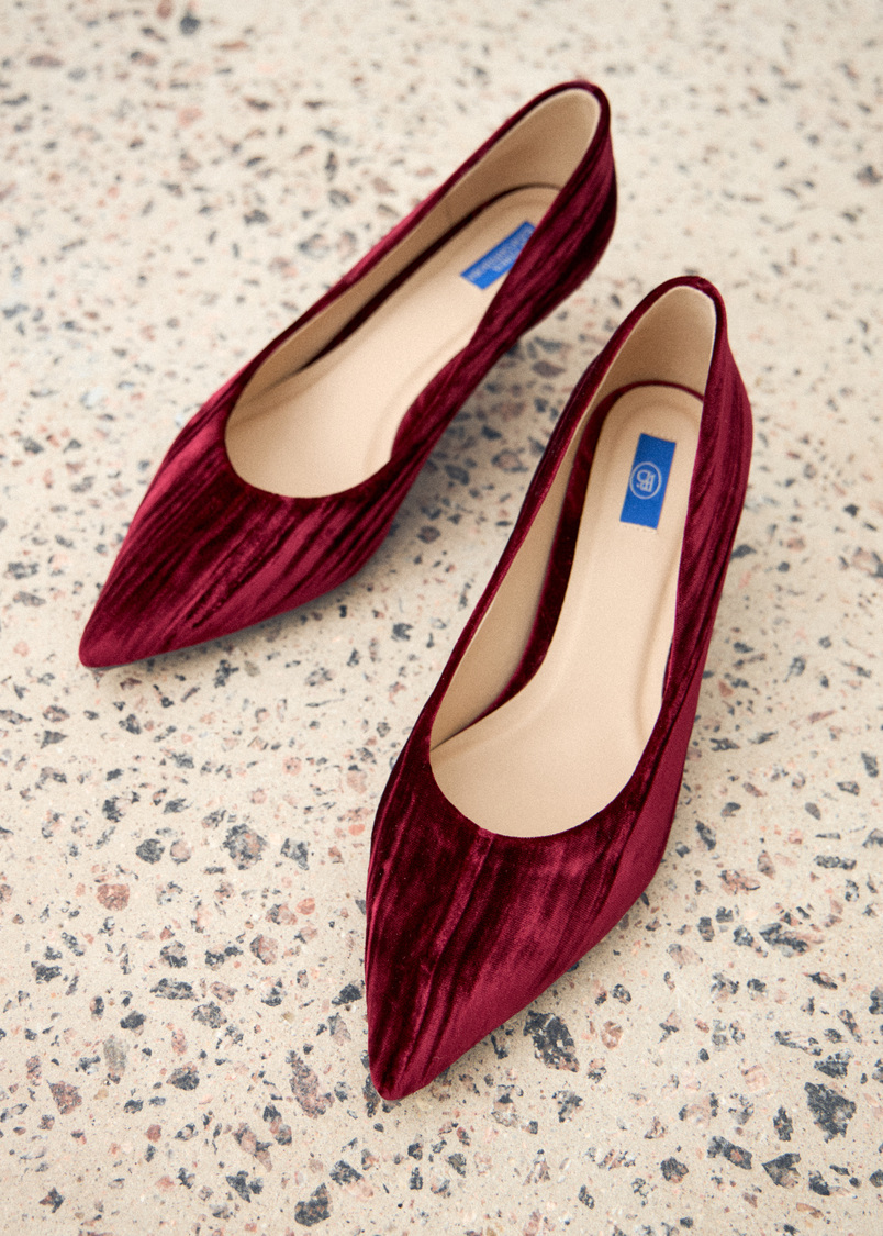 Роскошь, которую можно носить каждый день. Глубокий бордовый бархат с мягким отливом, устойчивый kitten heel 5,5 см, идеальная колодка — нога не устаёт даже после 12-часового дня и ужина.