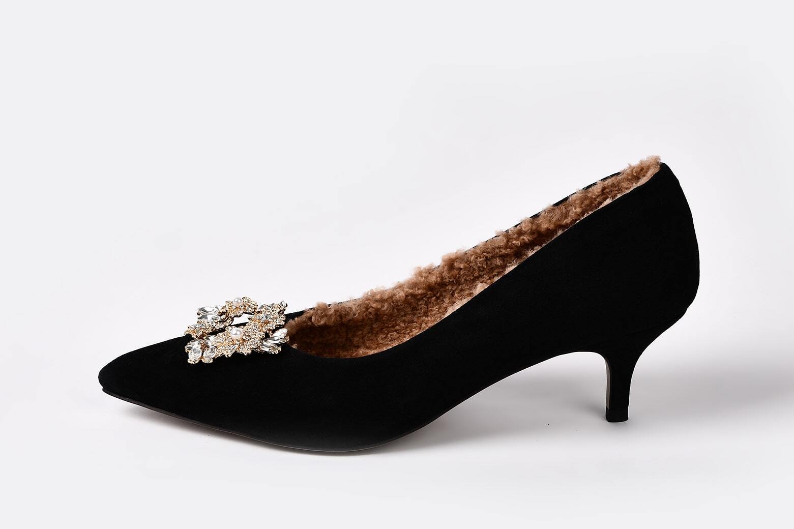 Изысканные туфли из натуральной итальянской замши с подкладкой и стелькой из мягкого меха. Модель с заостренным носком и устойчивым каблуком 5 см декорирована элегантной пряжкой с ограненным стеклом и жемчугом. Анатомическая колодка обеспечивает невероятный комфорт, а соответствие ГОСТам гарантирует качество. Универсальный дизайн дополнит как классические брюки, так и вечерние платья. Идеально подходит в офис и на осень.