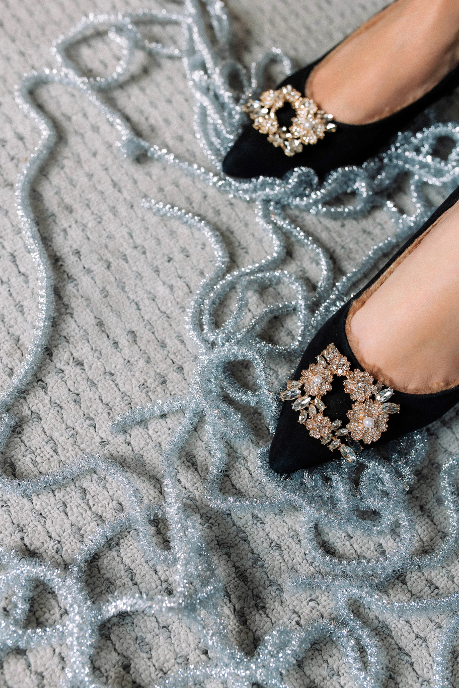 Роскошные туфли с мехом и брошью на каблуке 5 см.
