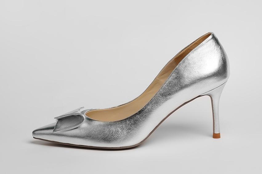 Лодочки из натуральной Итальянской кожи красивого серебряного цвета. Заостренный нос и каблучок 7 см . Вы их даже не почувствуете на ножке, колодка разработана с любовью и пониманием. Все параметры подобраны в соответствии с ГОСТами. Модель очень удобная и изысканная одновременно. Красивый серебристый цвет и игривый бантик привлечет внимание.