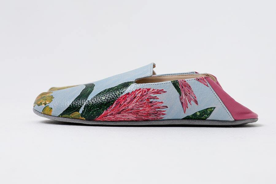 Кожаные тапочки с мягкой пяткой созданы по мотивам картины Анны Калининой "Цветы". Уникальный дизайн выполнен в технике печати на натуральной коже, что делает каждую пару произведением искусства. Мягкая пятка обеспечивает комфорт и удобство, позволяя носить тапочки как с задником, так и без.
