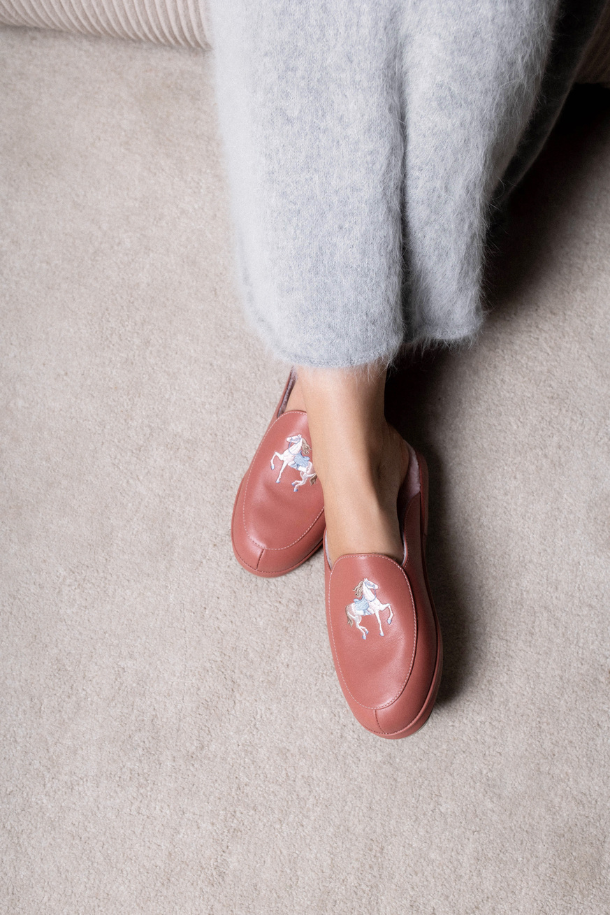 Роскошные клоги ручной работы с мехом и вышивкой лошадки-Уникальный подарок на Новый Год.