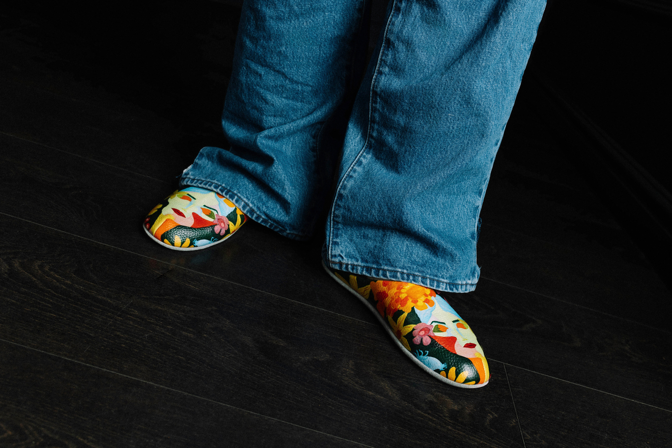 Невероятно мягкие тапочки из натуральной кожи выполнены по мотивам картины Данила Ваулина "Цветущая"