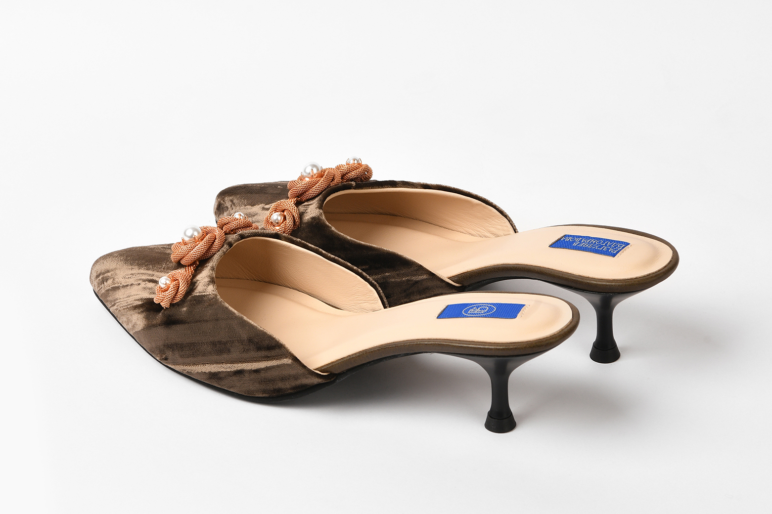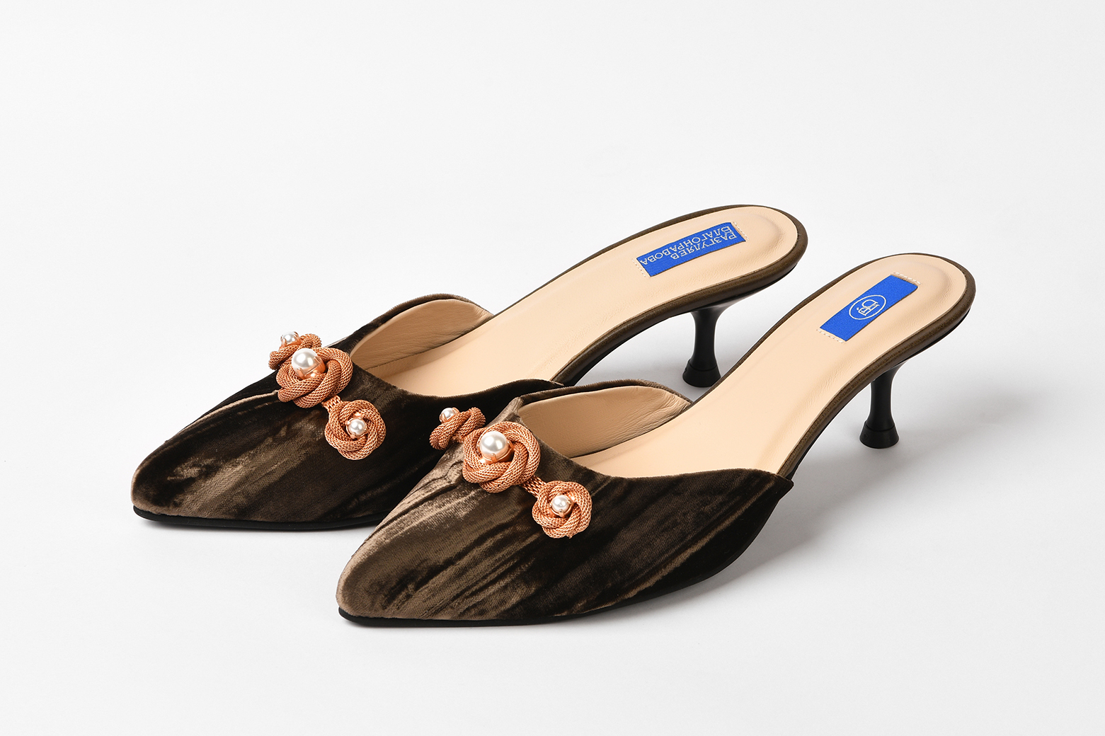 Мюли из бархата «Винтажная роза» с брошью