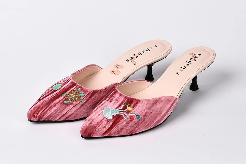 Мюли из бархата с вышивкой "Черепашка"