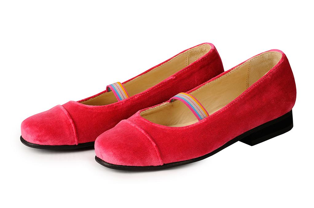 Детские бархатные балетки ярко-розовые